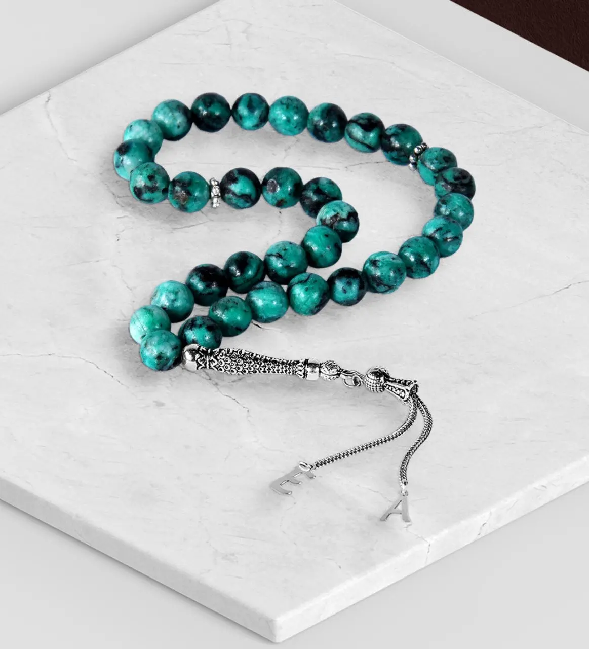 HOT Sale Personalized Letter End Malachite Stone Natural Stone Rosary