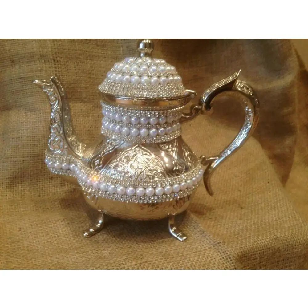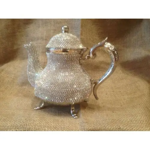 Swarovski decorated stones copper tea pots high value Hand made luxury silver