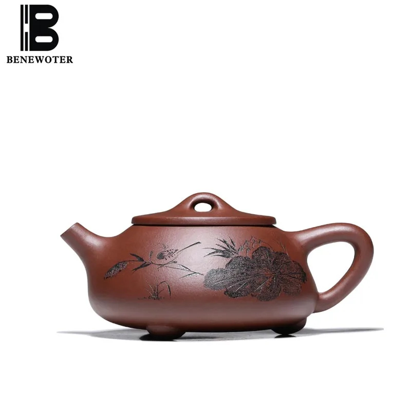 Best 220cc Yixing Purple Clay Stone Scoop Teapot Raw Ore Lotus Leaves Pattern Zisha Pot Vintage Drinkwar