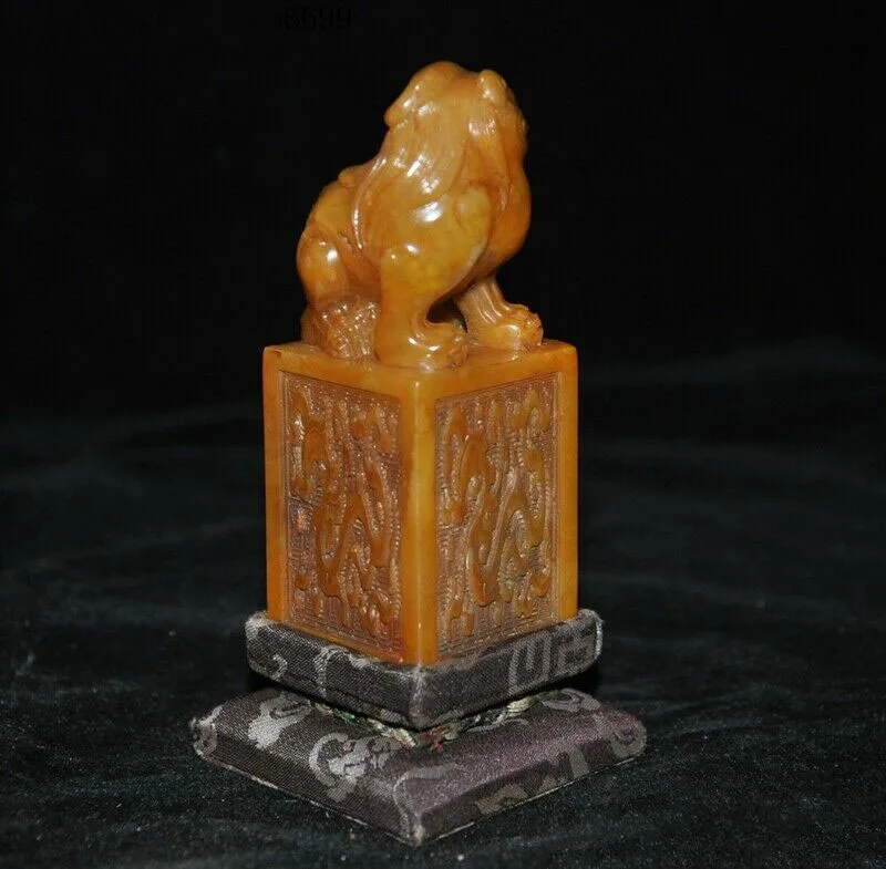 ORIGINAL wedding decoration Natural Tianhuang Shoushan Stone Pixiu beast Text Seal stamp signet wood Box set
