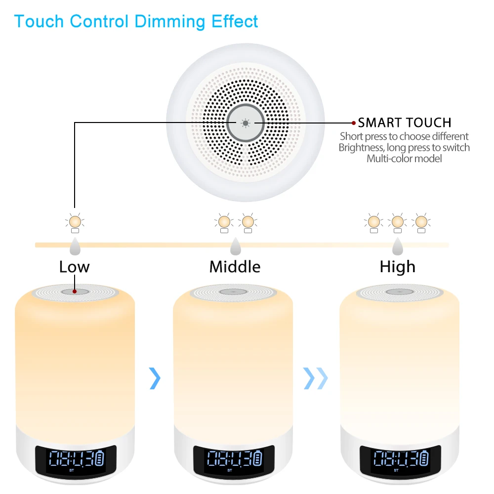 HOT Sale TOPROAD Night Light Bluetooth Speaker Portable Wireless Speakers Clock Touch Control Colorful LED B