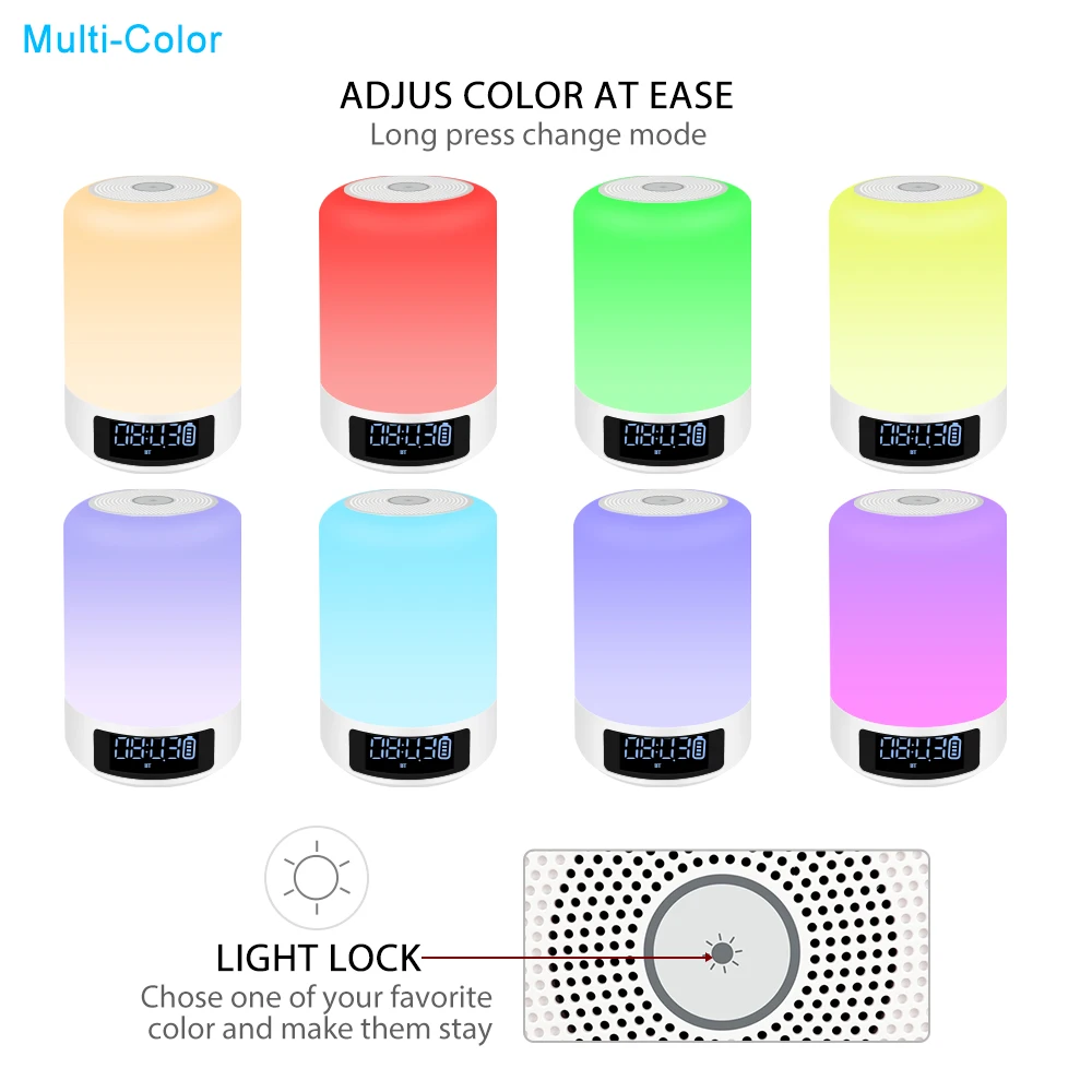 TOPROAD Night Light Bluetooth Speaker Portable Wireless Speakers Clock Touch Control Colorful LED B